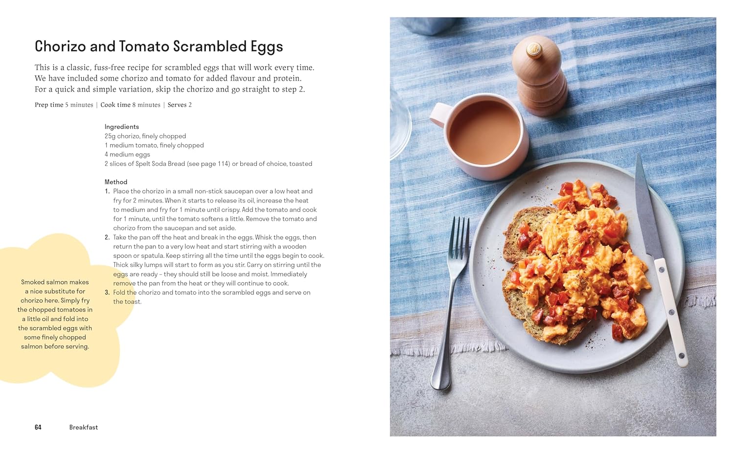 From family meals to dips and treats, the delicious recipes include crunchy chocolate spread, chicken skewers, dahl with sweet potato, turbo-charged porridge, cheese and almond biscuits and protein-packed pasta dishes.