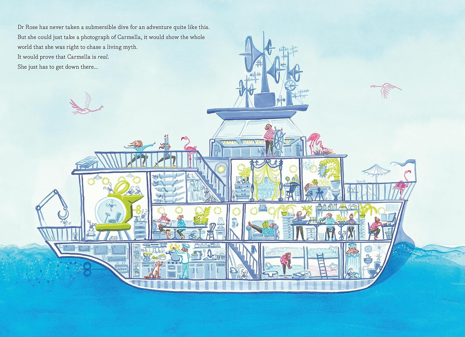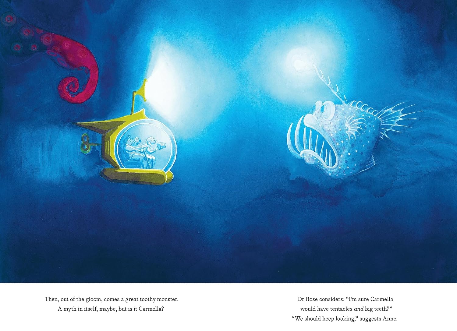 Ever since Dr Rose was a little girl paddling in rock pools, she has always loved the sea and exploring the weird and wonderful creatures living there. Now, as a marine biologist, Dr Rose is in search of a sea creature rumoured to reside within its hidden depths; one that many speak of, but no one has ever seen – Carmella. With her team of scientists and explorers, she will descend to the unfathomable dark of the deep ocean in a slick submersible, to discover the incredible, and almost unbelievable, creatures that inhabit a nearly pitch-black world.