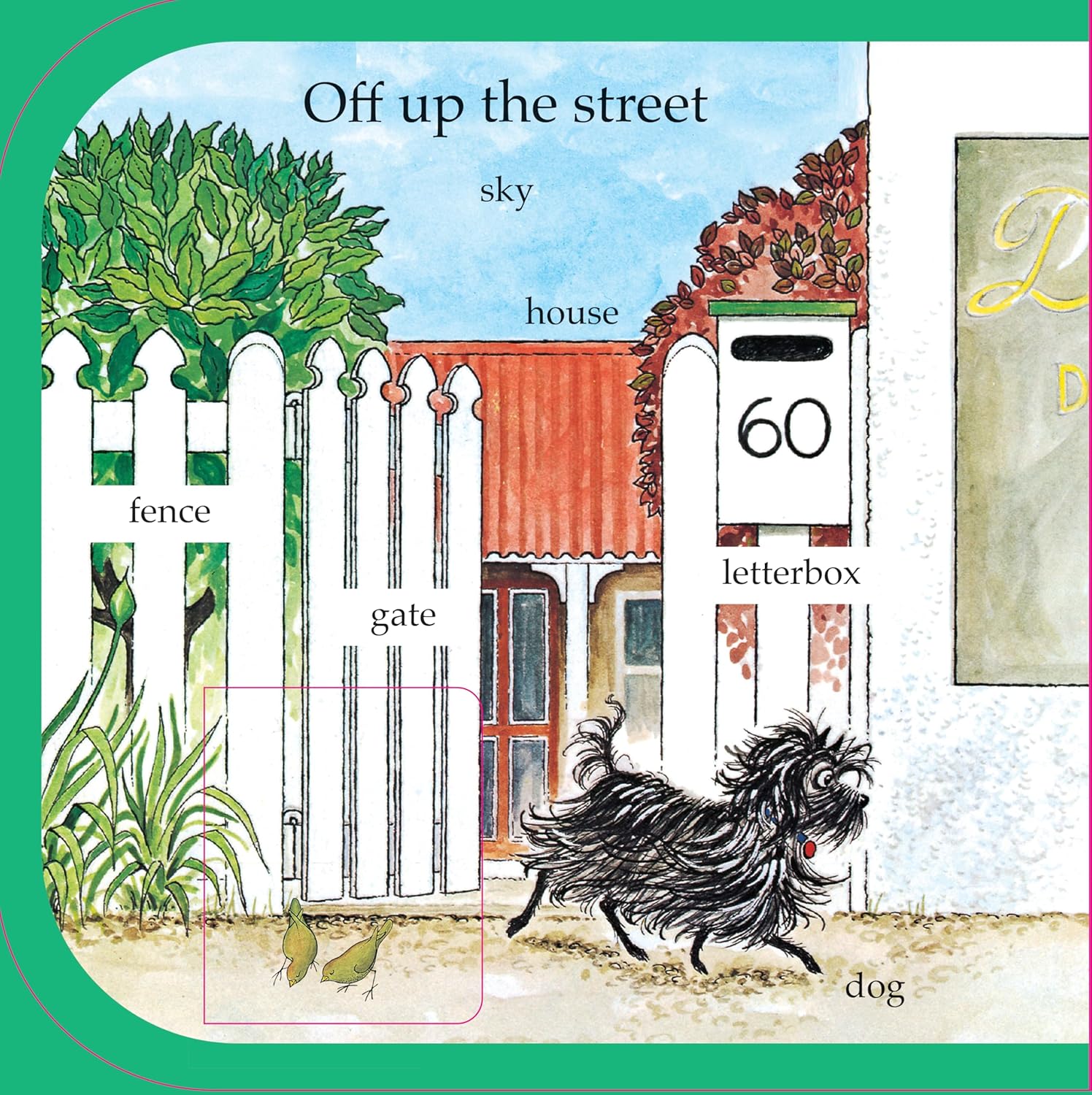 Join the rascally dog and his friends as they go on adventures around the house and off up the street, to the park, to the zoo, and chase cats, play games and more — and discover 100 key first words along the way.
