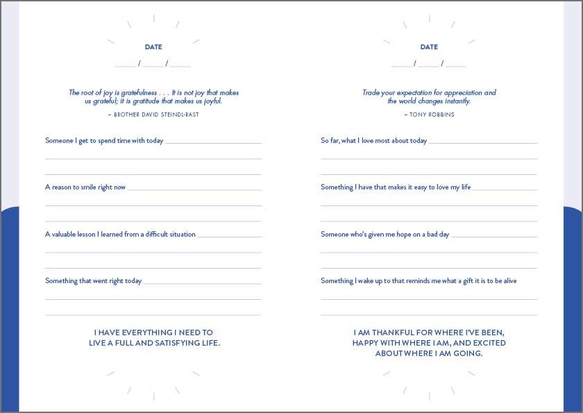 Unique prompts each day — Make gratitude a daily practice through powerful quotes, positive affirmations, and a wide range of prompts that reinforce what you're thankful for.