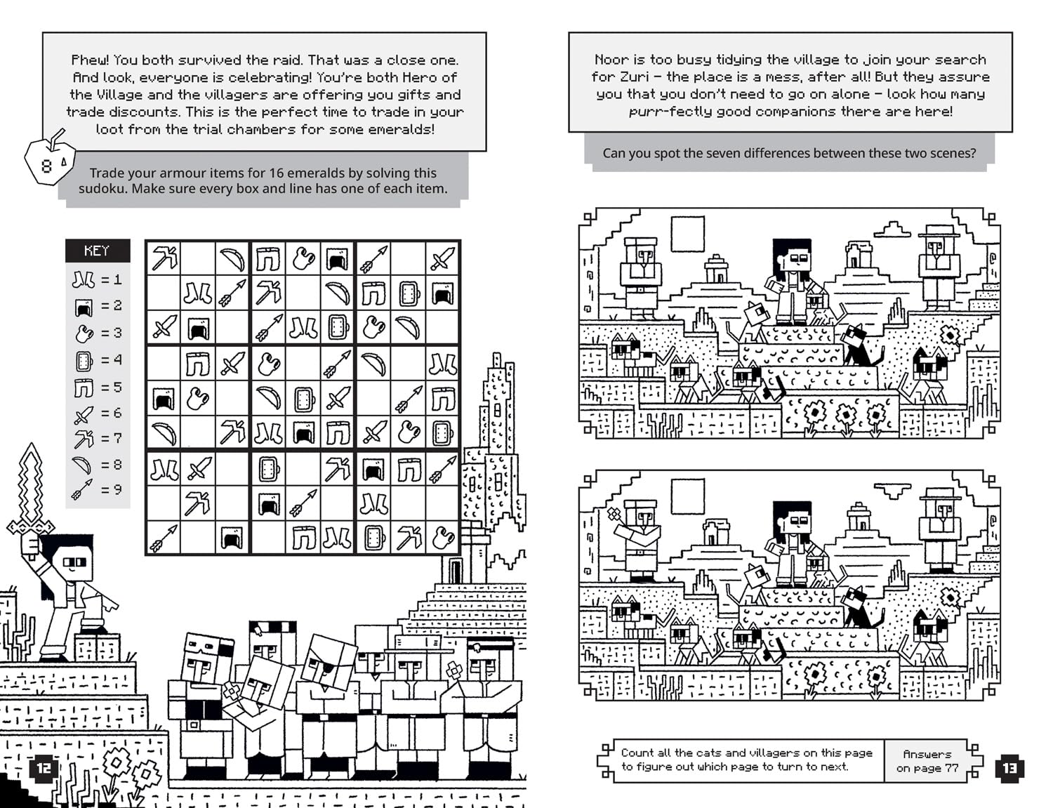 Stuffed to the brim with Minecraft-themed puzzles that engage kids in an adventure across the Overworld. Solve the puzzles to figure out the next page number, and collect clues as you go to finish the story.