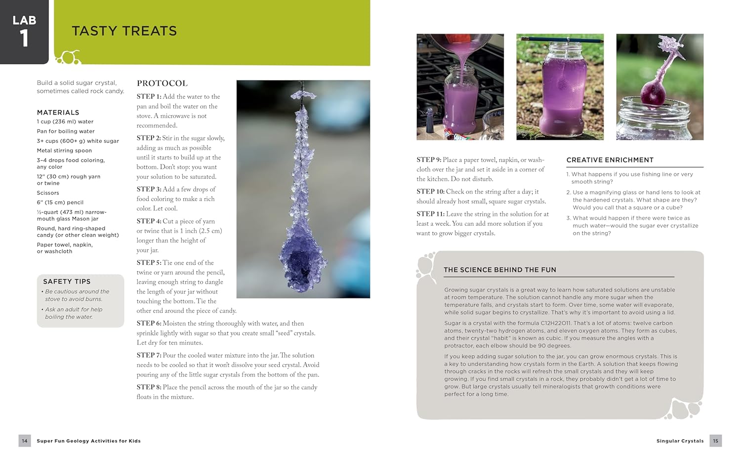 Super Fun Geology Activities for Kids contains a complete materials list, clear step-by-step photographs of the process, as well as finished samples for each project. The activities are open-ended, designed to be explored over and over, often with different results. Geared toward being taught or guided by adults, they are enriching for a range of ages and skill levels.