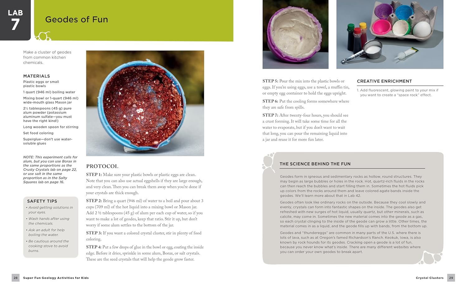 Geology Lab for Kids is a family-friendly guide to the wonders of geology, including crystals and fossils, the layers of the earth’s crust, and the eruption of geysers and volcanoes.