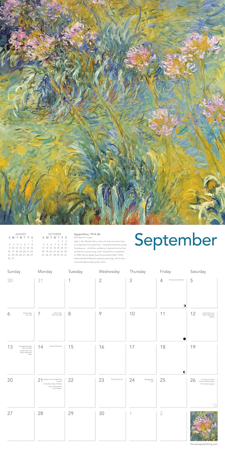 Considered a founder of Impressionism, Claude Monet was fascinated by the changing of light, and he repeatedly painted the same scenes in order to capture these subtle changes. His waterlily paintings are some of the most famous artworks in the world, and this exquisite calendar features 12 of these stunning works.