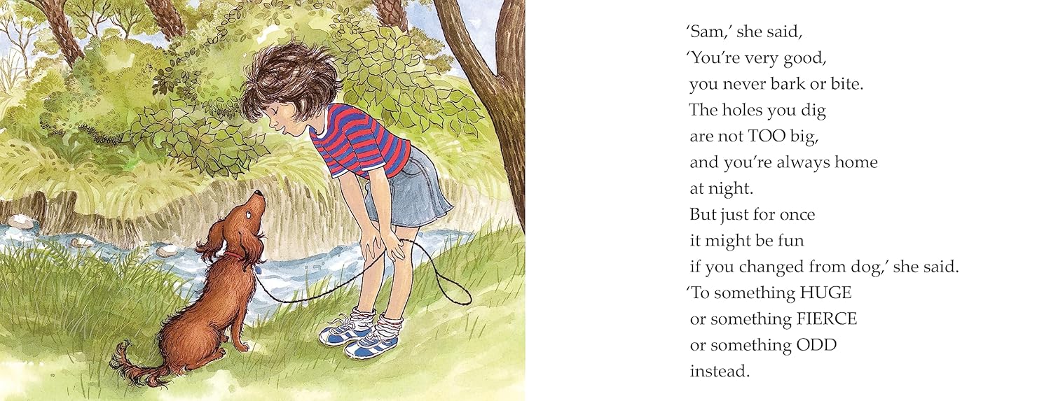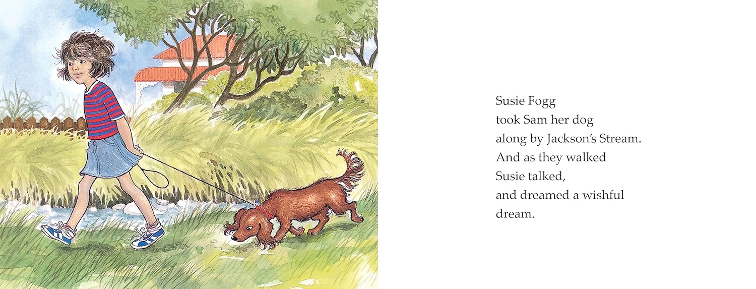 When Susie Fogg takes her dog for a walk, she dreams of having a more exciting pet. What if Sam were a dragon in a wagon?