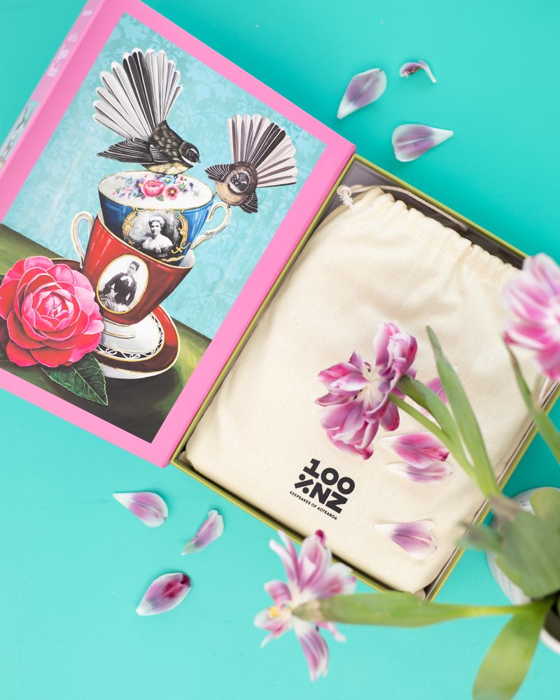 Inspired by the suffragette movement of the 19th century, the artwork honours leaders such as Kate Sheppard and Meri Mangakāhia, who fought for women’s right to vote. The symbolic camellia flower, gifted to parliamentarians who supported the suffrage bill, is woven through this striking piece. Packaged in a beautifully designed box with a handy drawstring bag, this puzzle is both a thoughtful challenge and a tribute to Aotearoa’s trailblazing women.