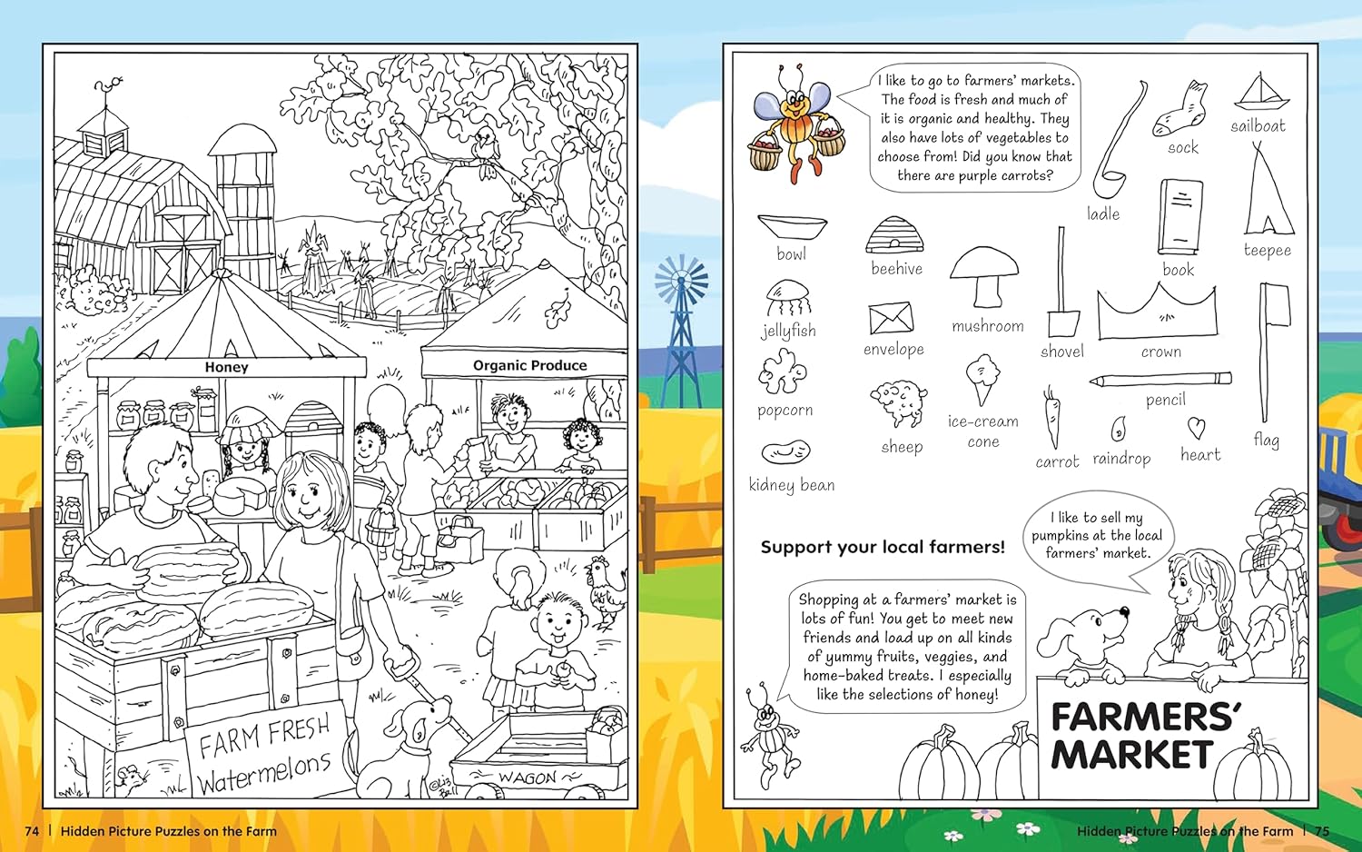 Find the hundreds of cool animals and secret items hiding inside Hidden Picture Puzzles on the Farm!