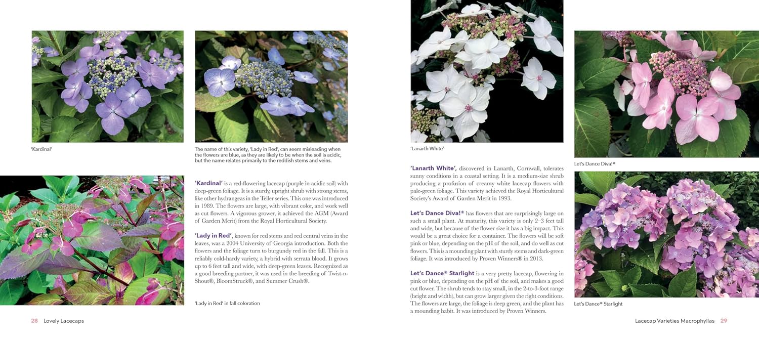 Helpful chapters are devoted to the latest information about: . lacecap varieties, . flower color, . plant size and plant selection tips, . life cycle and care, . landscaping to maximize the visual impact of lacecaps, . successfully planting and caring for lacecaps, and . bringing lacecaps indoors for use in both fresh and dried flower arrangement.