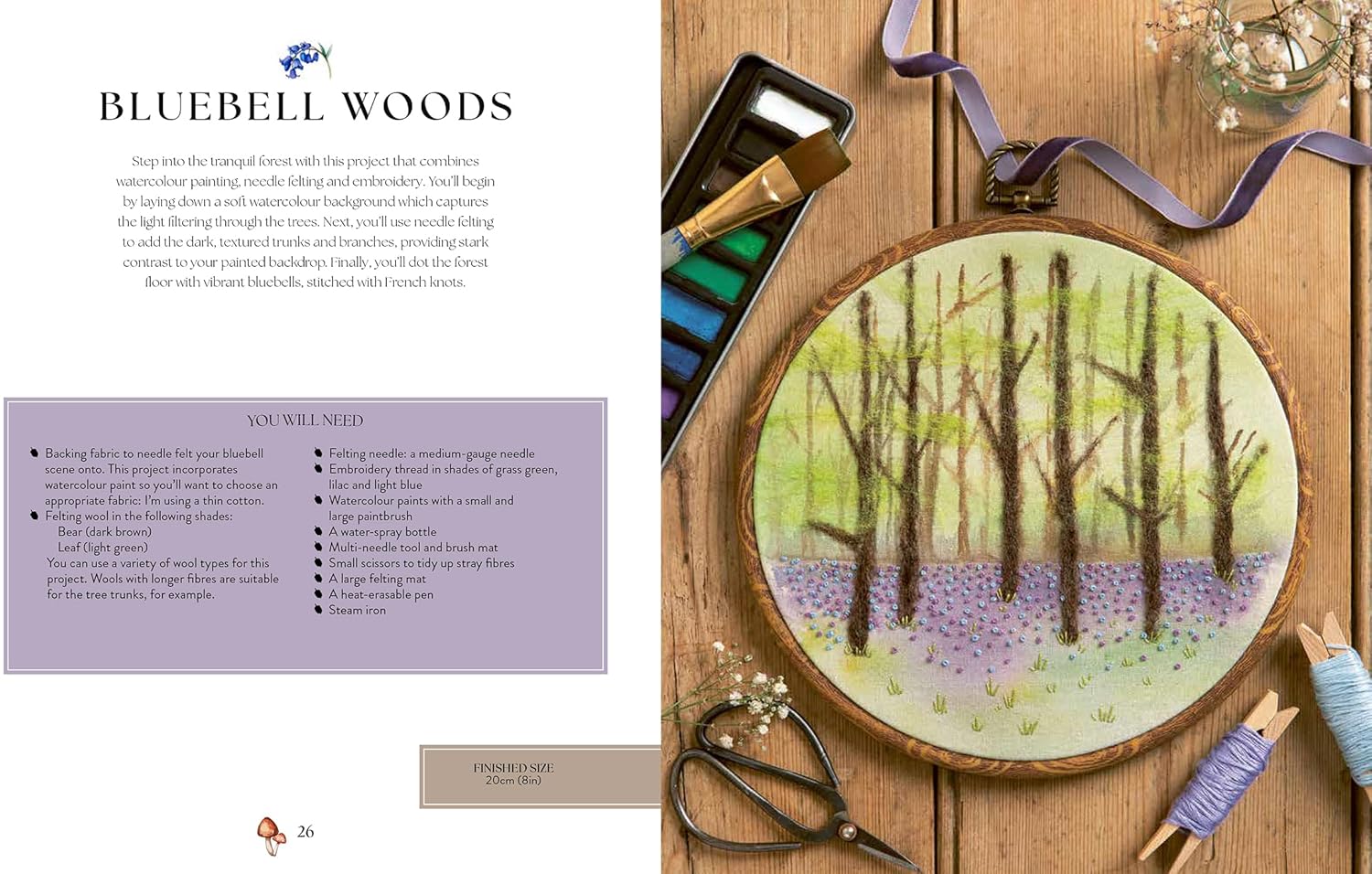 Push your creative boundaries: incorporate embroidery techniques, watercolor, felt fabric and small foraged items, which add extra dimension and texture to bring your woodland scenes to life.