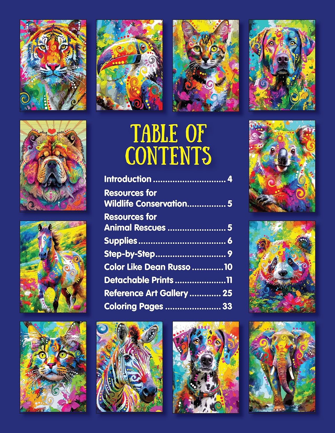 The 30 colouring page designs include exotic and wildlife animals, fish, dogs, and cats. This unique book also includes 8 stunning Dean Russo prints. Each is printed on perforated high-quality paper, ready for framing and display.