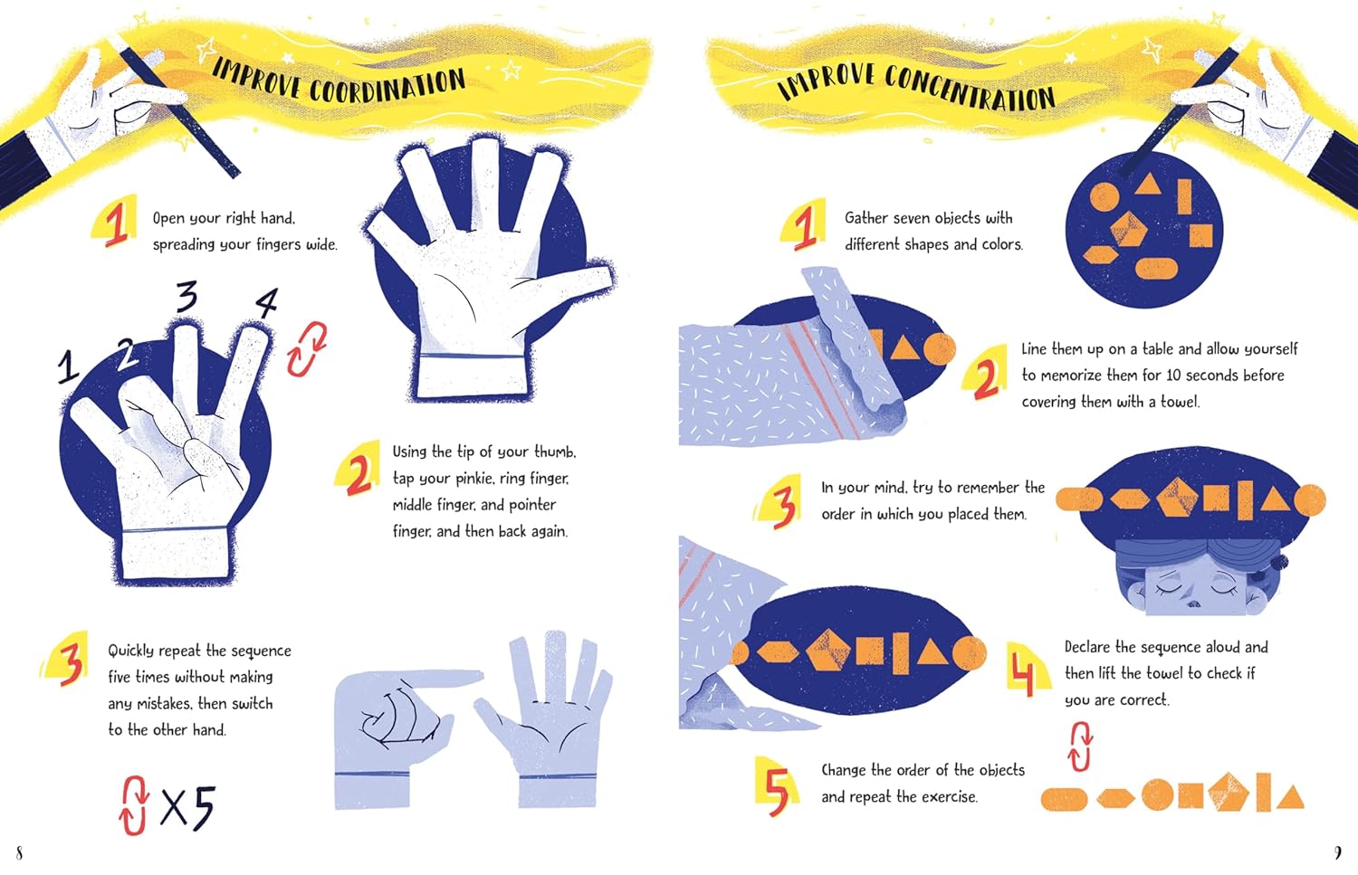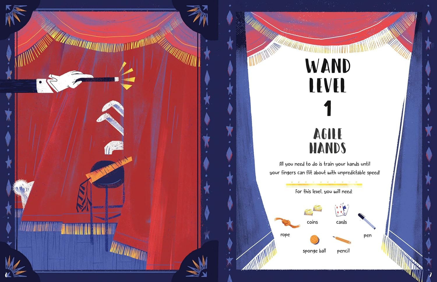 School of Magic is illustrated with clear-and-easy instructions for effective and impressive tricks that can be done at home with everyday objects. This handy guide starts with skill development, like hand-eye coordination, rope tying, and card shuffling exercises. It then provides step-by-step directions for a variety of magic tricks that go from simple to harder. There are even short biographies of famous illusionists throughout time, like Adelaide Herrmann and Harry Houdini. Aspiring magicians will feel like they are in a real "magic school"!