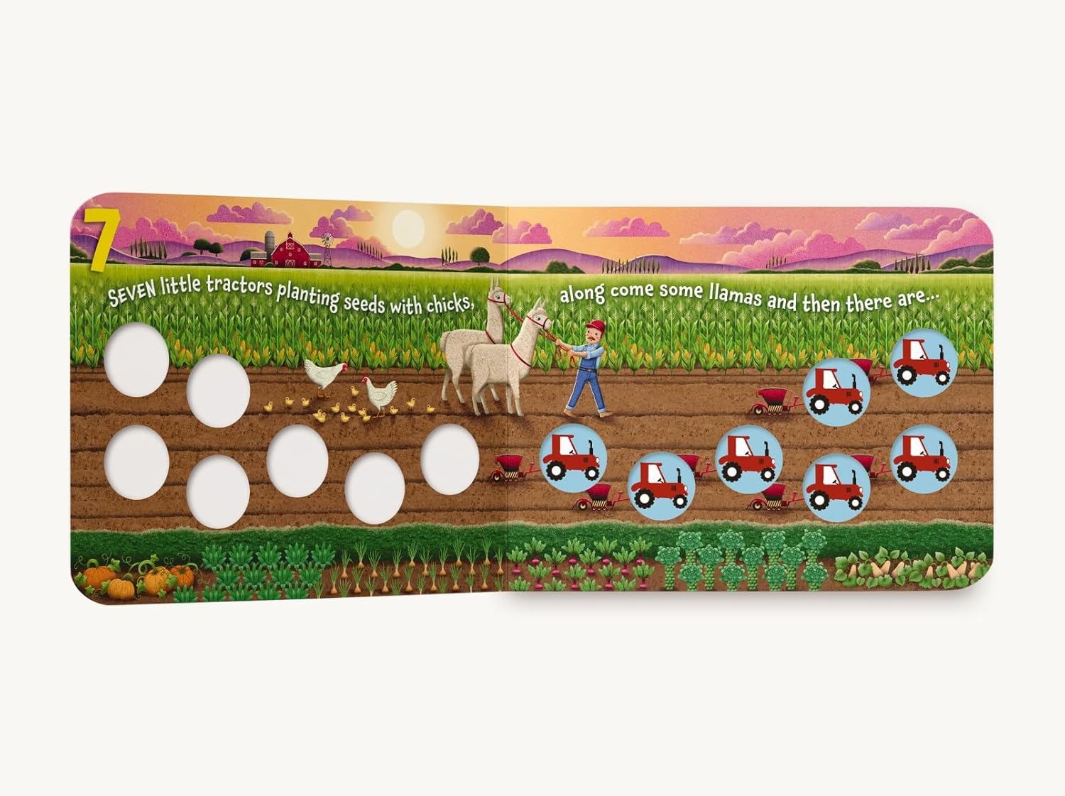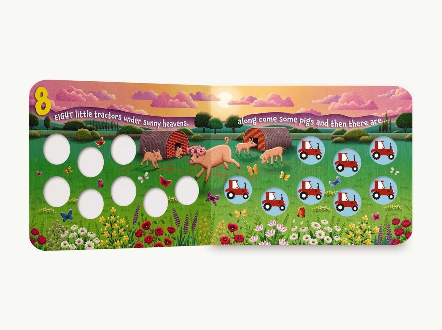 With each page, one more tractor disappears. To demonstrate this concept, this book uses tactile tractor buttons to help children count how many little tractors are left as the story progresses. Follow along with the easy rhythm and rhymes of this story and let your child touch the colorful, built-in toys for a creative, hands-on approach to counting.