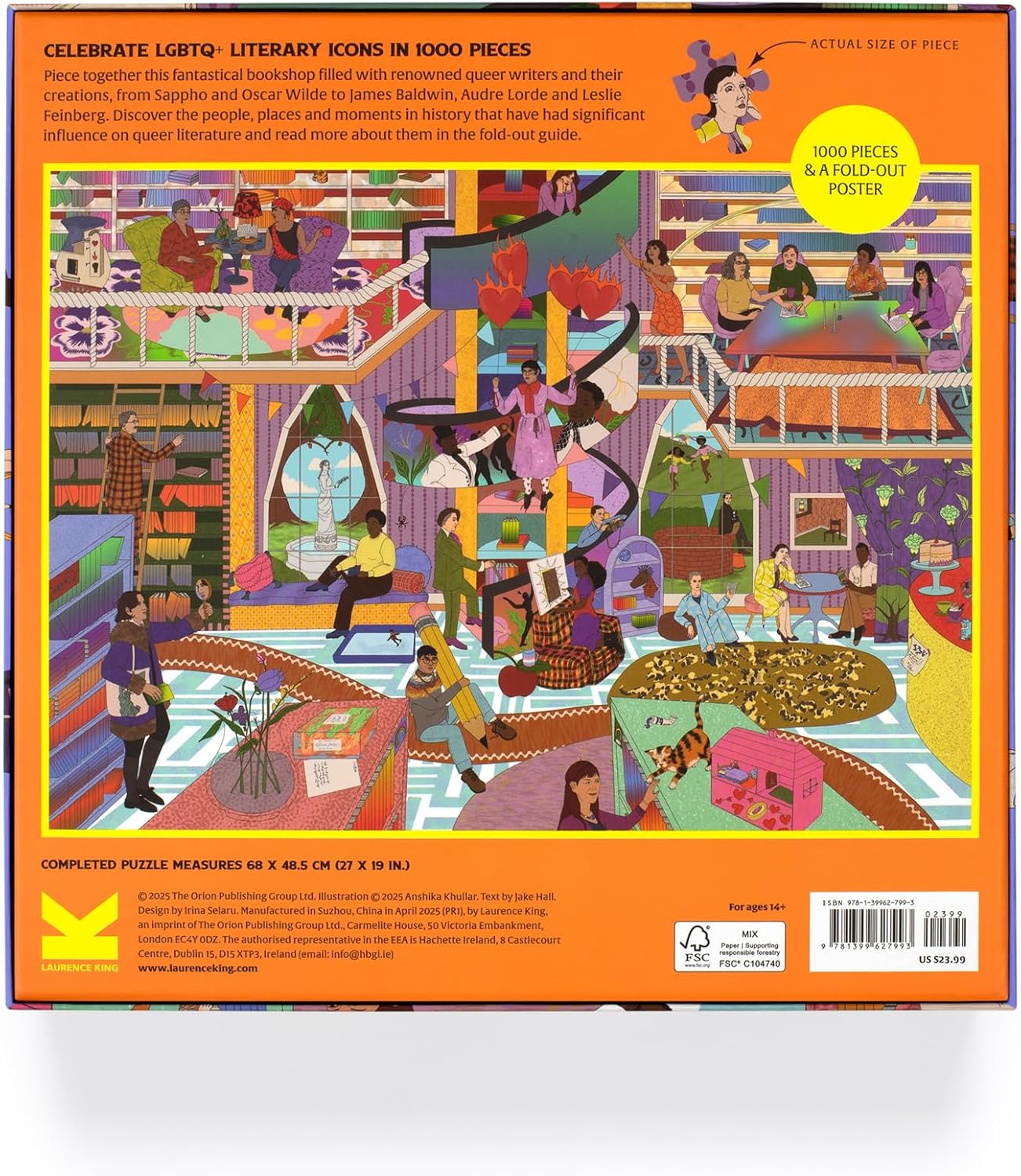 1000-PIECE PUZZLE celebrating LGBTQ+ literary icons, measuring 48.5 x 68 cm (19 x 27 in.) when completed.