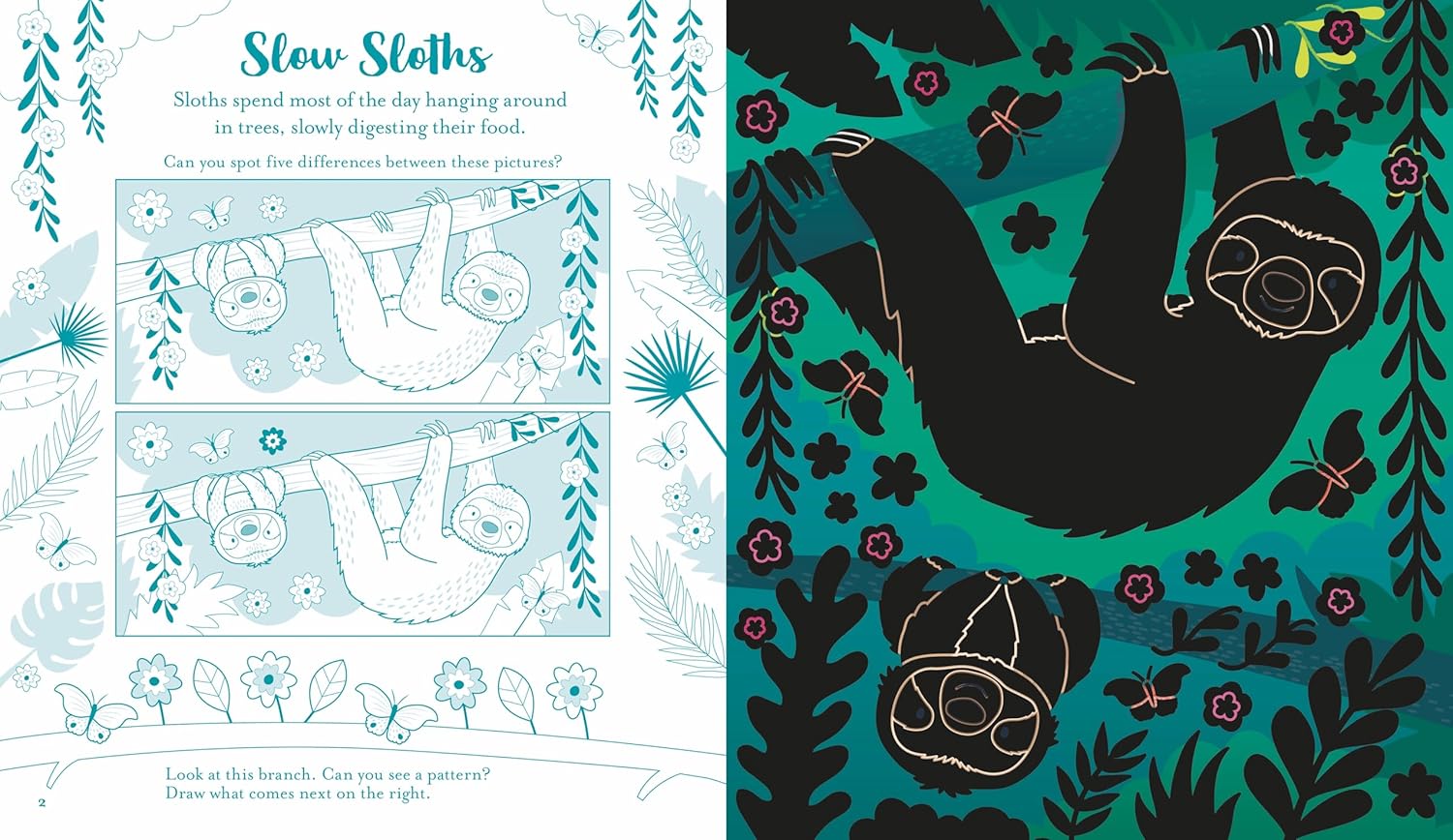 This activity book is filled with adorable animals and inviting patches to scratch. Using the wooden tool provided, scratch off whole patches to reveal hidden details, or make lines and patterns to create your own designs. Every scratch art page has a facing page of animal-themed colouring and puzzles. Easy and relaxing, with satisfying results guaranteed.