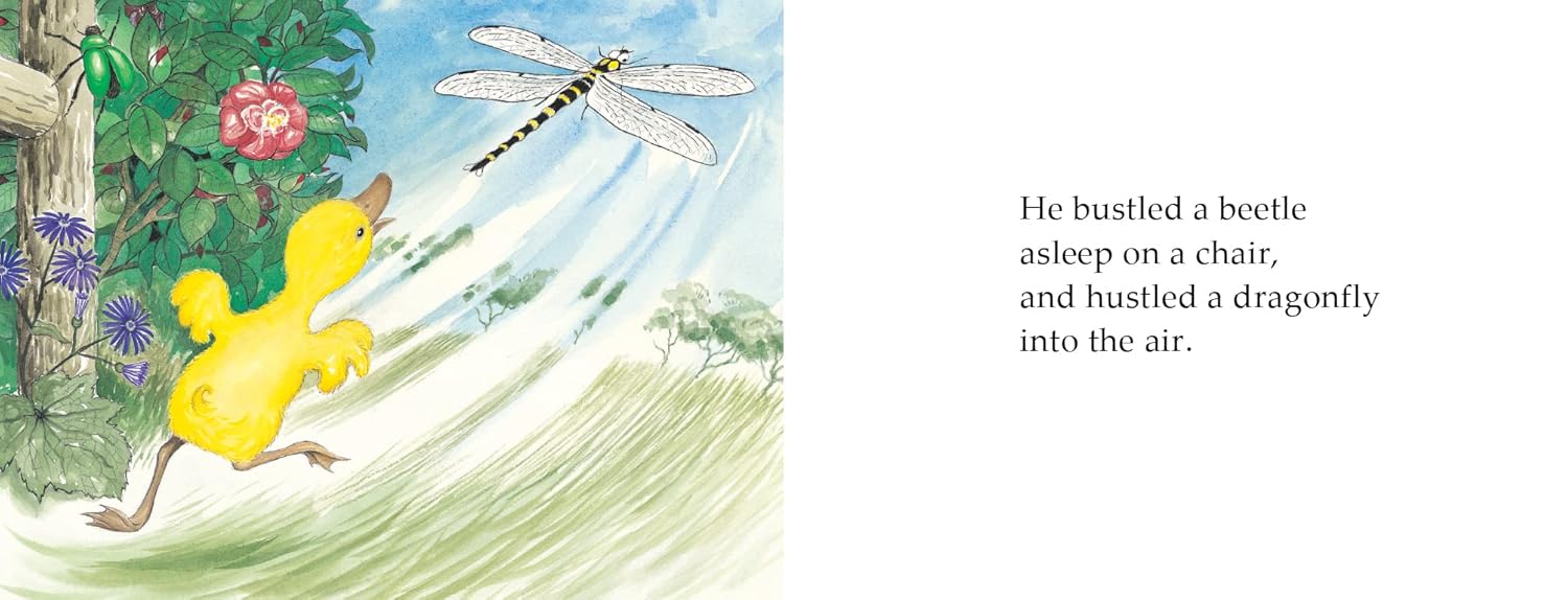 Zachary Quack is pestering and scruffling all over the river bank. Then he finds a flicketty-quick dragonfly and hustles it here, there and everywhere.